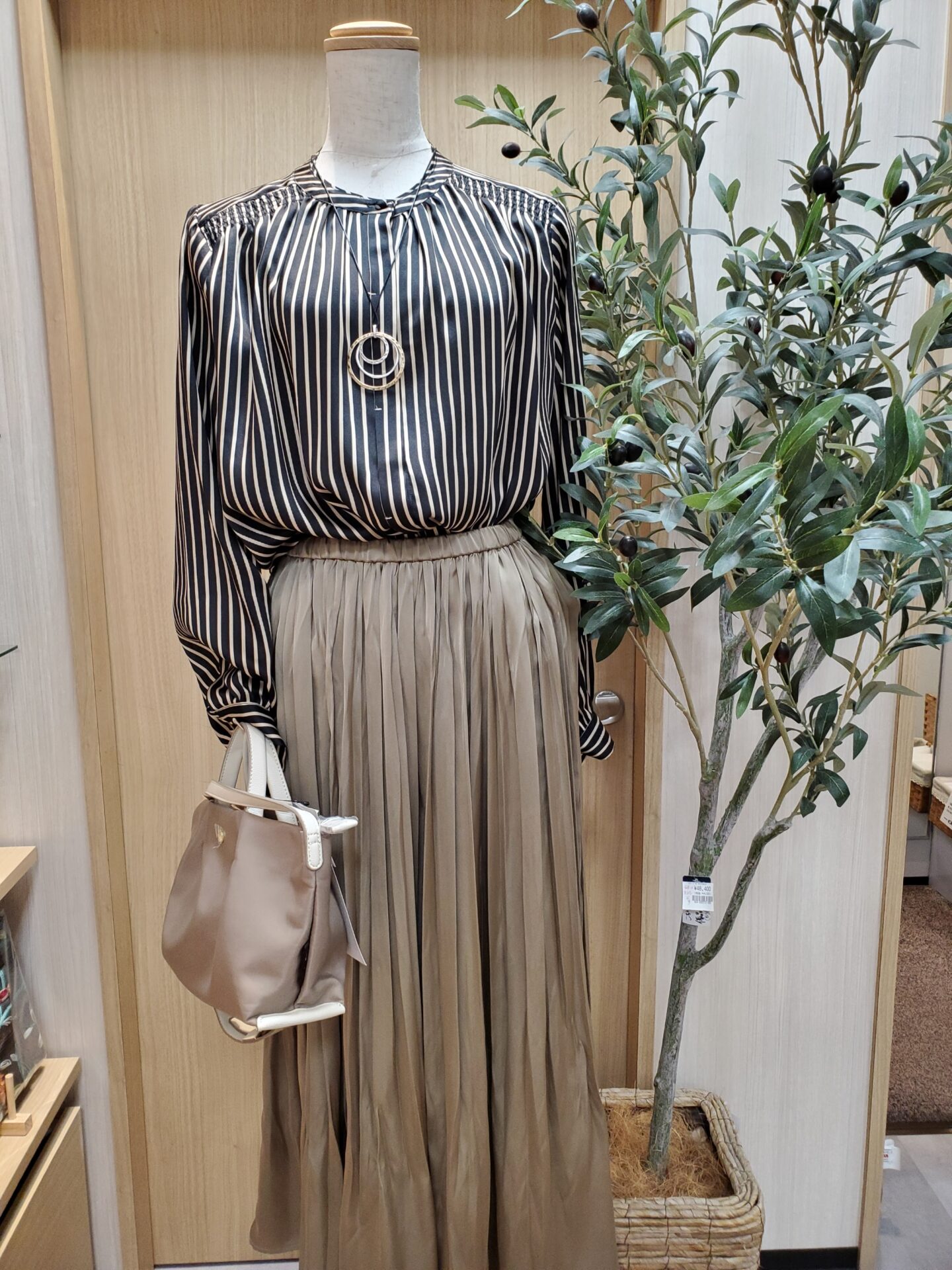オータムフェア 秋のお出かけに ステキなブラウスがたくさん入荷しています ストライプブラウス ¥7,590