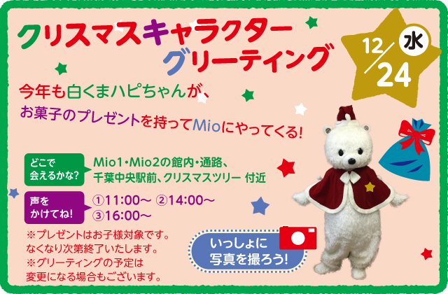 今年も白くまハピちゃんがMioにやって来ます! いっしょに写真を撮ろう!