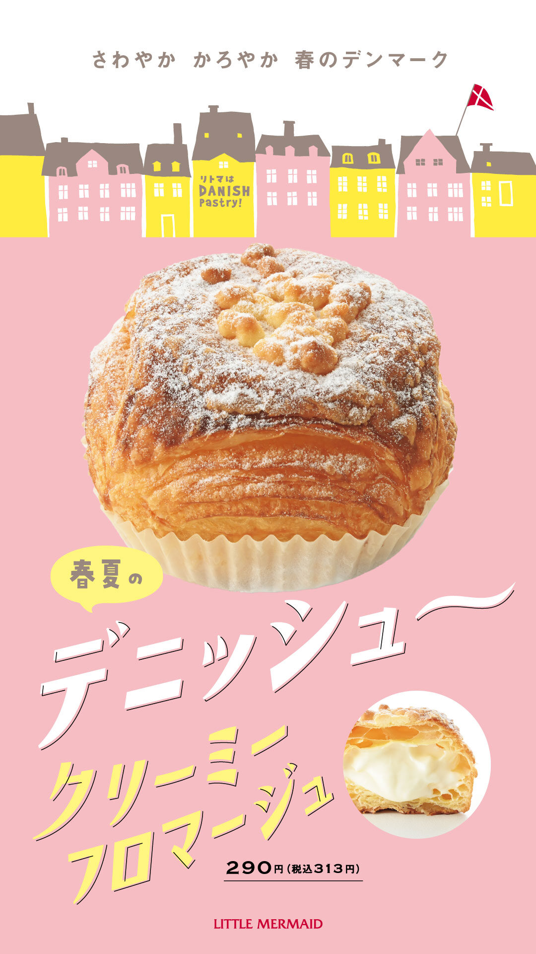 デニッシュ~クリーミーフロマージュ ¥319(税込) クリームチーズとレモン果汁でさわやかな味わいに 仕上げたクリームをたっぷりと絞りました🧀🍋