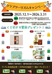 クラブツーリズム商品をお申込みの方に抽選のチャンス!