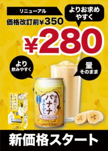 酒蔵が作ったバナナスムージーが、¥350→¥280とよりお求めやすくなりました!